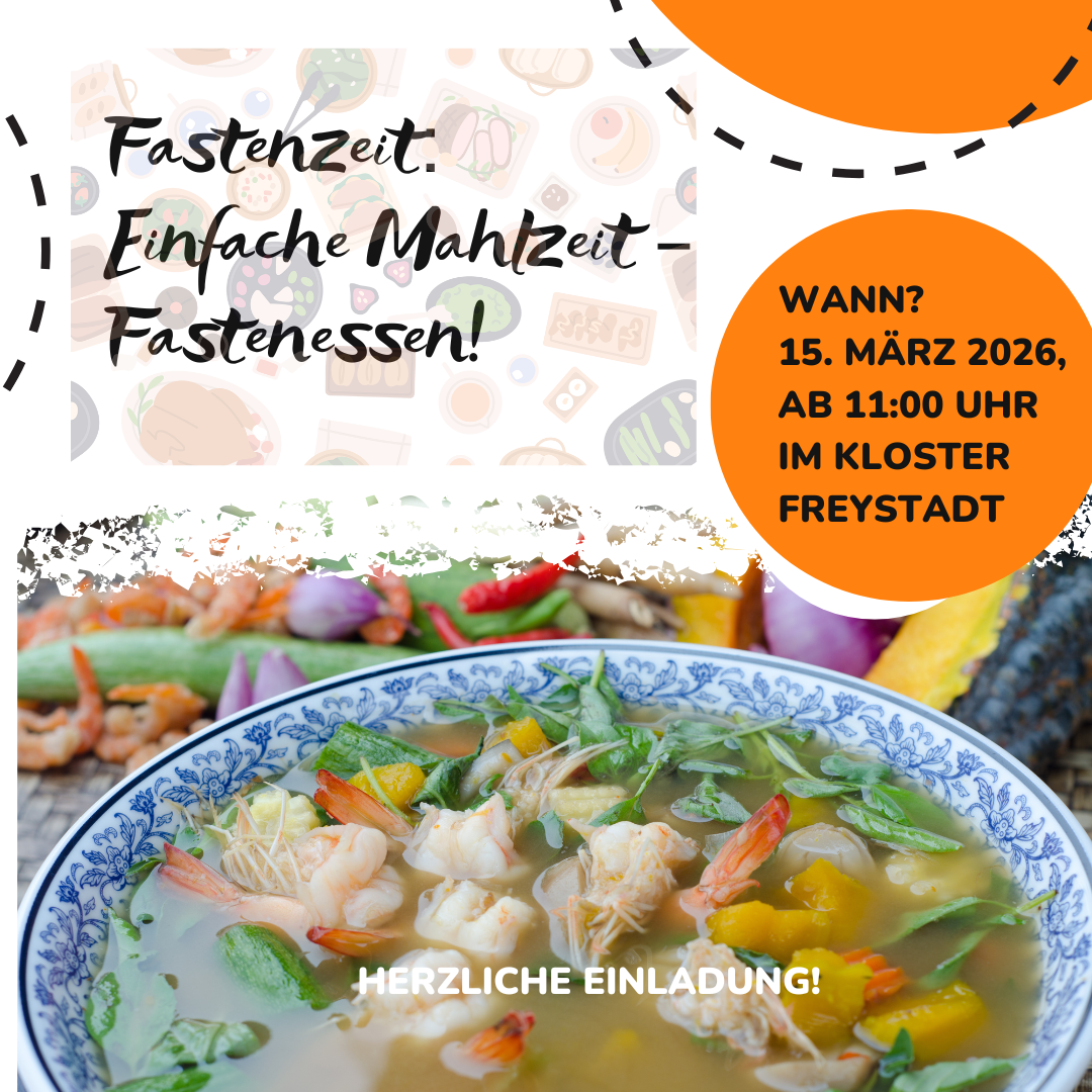 Am Sonntag, 15. März 2026, laden wir euch ganz herzlich zum Fastenessen ein – ab 11:00 Uhr im Kultursaal des Klosters.