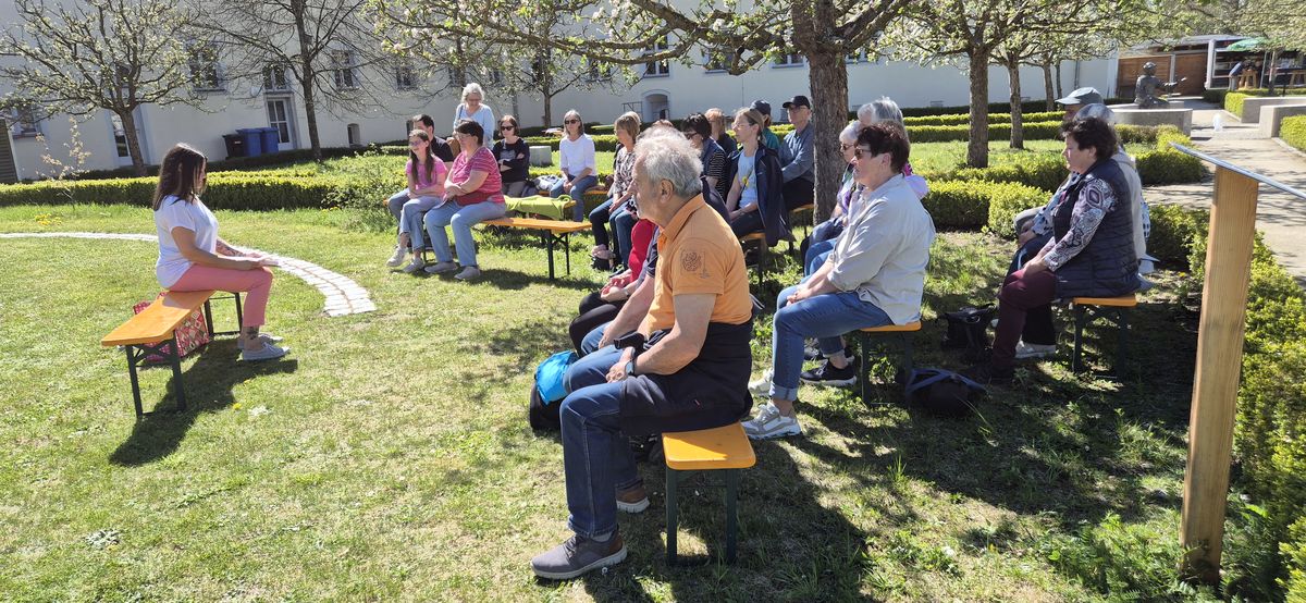Im Laufe des Tages erwartete die Besucherinnen und Besucher ein abwechslungsreiches Programm mit zahlreichen Impulsen und Mitmachangeboten. Johann Beck führte in den neuen Innehalten-Parcours mit Übungen und QR-Code-Anwendungen ein, während Heidrun Kirsch mit einer Klangschalenreise Momente tiefer Ruhe schenkte.